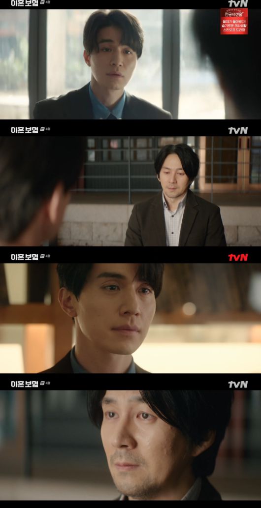 8일 방송된 tvN 새 월화드라마 '이혼보험' 4회에서는 노기준(이동욱 분)이 매형 서기준에게 영업하는 모습이 그려졌다.
