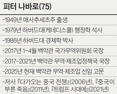 미국 언론이 피터 나바로(75) 백악관 무역·제조업 담당 선임 고문을 가리키는 표현이다. 도널드 트럼프 행정부 1기 4년을 꽉 채우고 2기에도 발탁된 경제 관료는 그가 유일하다. 두 사람의 관계는 2011년으로 거슬러 올라간다. 트럼프가 LA타임스 인터뷰에서 좋아하는 책 10권 목록을 공개했는데, UC어바인 교수였던 나바로의 공저 『중국이 부른 죽음(Death by China)』을 6위에 올린 게 인연이 됐다.