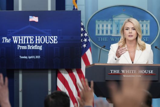 캐롤라인 레빗 미국 백악관 대변인이 8일(현지시간) 워싱턴 DC 백악관에서 정례 언론 브리핑을 하고 있다. AP=연합뉴스 |