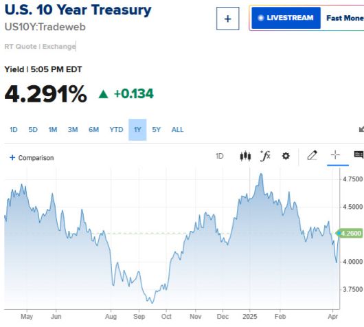 안전자산으로 꼽히는 미 국채도 이젠 피난처가 아니었다. 글로벌 국채 벤치마크 역할을 하는 10년물 국채금리는 13.4bp 뛴 4.291%까지 치솟았다. 경기침체 우려에도 미국채가 치솟는 원인은 불분명하다. 연준이 중장기적으로 인플레이션이 고착화될 수 있기에 금리인하를 서두르지 않고 있다는 점, 트레이더들이 포지션을 청산하면서 광범위한 디레버리징이 있어나고 있다는 점, 중국과 같은 외국 중앙은행이 미 국채를 대거 매도하고 있다는 점 등이 거론되고 있다.