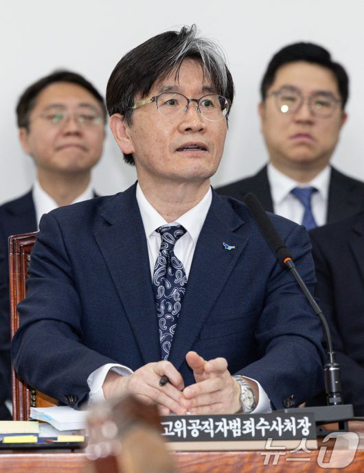 (서울=뉴스1) 이재명 기자 = 오동운 고위공직자범죄수사처(공직자) 처장이 9일 오전 서울 여의도 국회에서 열린 제424회 국회(임시회) 법제사법위원회 제1차 전체회의에서 의원 질의에 답변하고 있다. 2025.4.9/뉴스1