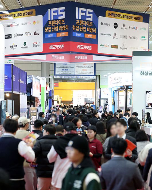 지난달 21일 서울 강남구 코엑스에서 열린 IFS 프렌차이즈 창업·산업 박람회를 찾은 관람객들이 부스를 둘러보고 있다./뉴시스 |