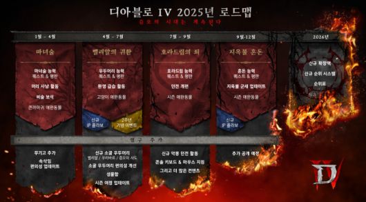 2025년 증오의 시대에서 선보이는 시즌들은 2026년으로 예정된 디아블로 IV의 두 번째 확장팩의 출시로 이어진다. 로드맵과 관련한 자세한 정보는 블로그에서 확인할 수 있으며, 디아블로 IV와 관련된 이미지 자료는 프레스 센터에서 확인 가능하다.