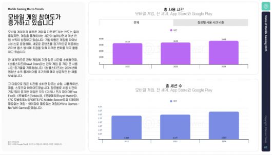 게임 다운로드 빈도는 줄었지만, 플레이 시간은 증가하고 있다. 이에 따라 개발사들은 정기적인 콘텐츠 업데이트와 이벤트 중심의 ‘라이브 서비스 운영(Live Ops)’에 집중하며 유저 참여를 확대하고 있다. 실제로 가장 많은 플레이 시간을 기록한 장르는 전략 게임이었으며, 뒤를 이어 슈팅, 시뮬레이션, 퍼즐, 스포츠·아케이드 장르 순이었다.