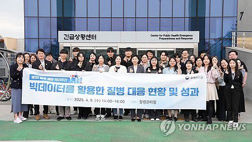 ▲ 질병관리청은 제1회 질병 예방·관리 주간을 맞아 9일 보건의료·데이터 관련 전공 대학생 등 15명을 초청해 오송 청사에서 현장 방문을 진행했다고 밝혔다. 참가자들은 방역통합정보시스템·국민건강영양조사 등 질병청이 수집하는 빅데이터 현황과 활용 성과에 대해 듣고 보건의료연구자원정보센터를 견학했다. 지영미 질병청장은 "이번 행사가 보건의료에 관심있는 학생들의 데이터 기반 질병 대응 정책 이해도를 높이는 기회가 될 것으로 기대한다"고 말했다. (서울=연합뉴스)