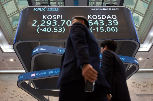 코스피는 이날 오전 9시 전날보다 0.18% 떨어진 2329.99로 거래를 개시해 오전 장중 2320선 근처에서 오르내렸다. 하지만 미국이 세계 주요국을 상대로 부과한 상호관세 발효 시점인 오후 1시를 기점으로 2300선 아래로 밀려났다. 코스닥지수는 전날보다 15.06(2.29%) 떨어진 643.39로 마감했다.