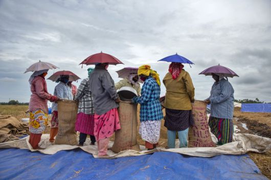 [알라푸자=AP/뉴시스] 인도 케랄라주 알라푸자에서 농민들이 수확한 농작물을 자루에 담고 있다. 인도 인구의 약 60%가 농업에 종사하고 있다. 자료사진. 2025.01.31 /사진=뉴시스 |