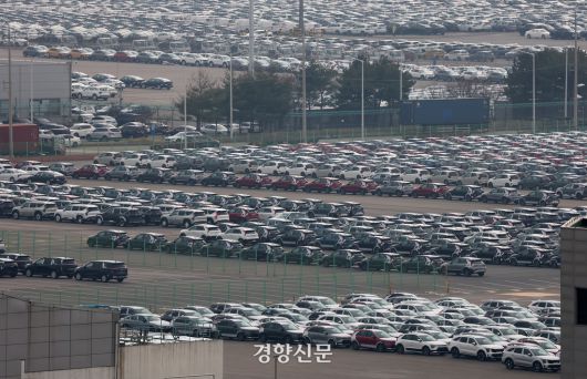 미국의 상호관세가 발효된 9일 경기 평택항에 수출용 자동차들이 주차되어 있다. 2025.04.09 권도현 기자 |