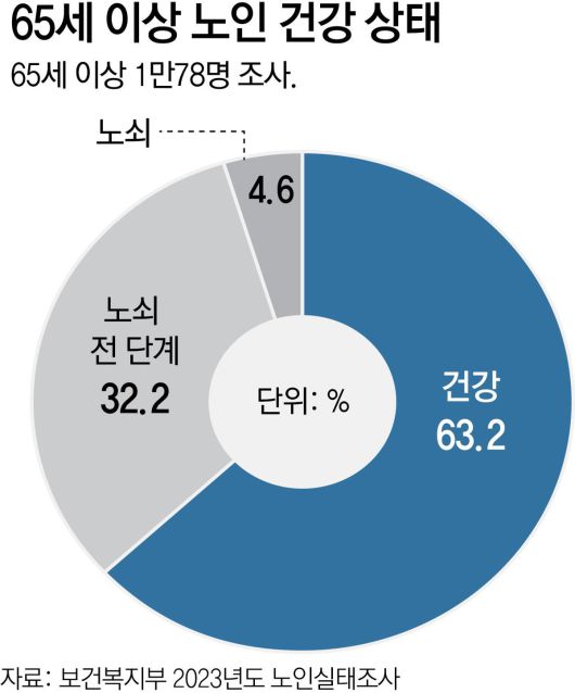 질병청은 내년부터 노쇠 전, 노쇠, 건강한 상태 등 노인 건강 수준에 따라 맞춤형 프로그램을 적용하는 시범사업을 추진할 계획이다. 지역별 환경이나 노인의 거주 형태 등도 고려한다. 질병청 관계자는 “농어촌, 도시 지역, 집에 사는 노인과 시설에 머무는 노인에게는 각기 다른 접근 전략이 필요하다는 점을 고려 중”이라고 말했다.