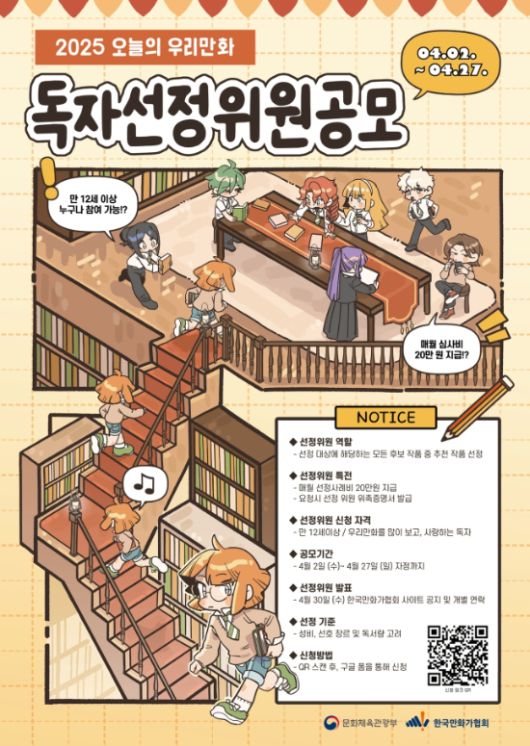 한국만화가협회가 '2025 오늘의 우리만화' 작품 선정을 위한 독자 선정위원을 공개 모집한다.