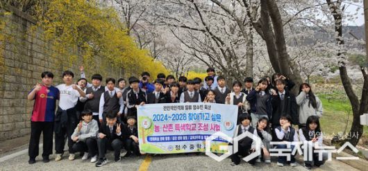 (영동=국제뉴스) 이재기 기자 = 충북 영동군 정수중학교(교장 구홍서) 전교생은 지난 9일에 양산면 마니산 일원에서 전교생을 대상으로 봄맞이 숲활동 및 트레킹 체험활동을 실시했다. 이번 행사는 학생들이 자연 속에서 벚꽃을 감상하며 건강한 신체 활동과 더불어 생태 감수성을 기를 수 있도록 기획됐다.