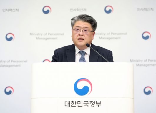 천지윤 인사혁신처 윤리복무국장이 10일 장기 재직 휴가 도입을 골자로 하는 국가공무원 복무규정 개정안 입법예고 관련 브리핑을 하고 있다/사진=인사처 |
