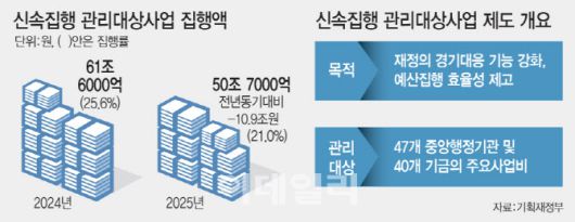 [세종=이데일리 강신우 기자] 정부가 내수 진작을 위해 올해 역대급 신속집행(중앙재정 67%)을 강조해왔지만, 초기 집행 실적은 저조한 것으로 나타났다. 목표액마저 줄었다.