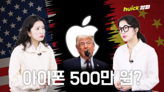 뉴스는 끊임없이 쏟아지고, 이슈는 시시각각 변합니다. '휙'은 최신 이슈를 알기 쉽게 해석하고 유쾌하게 풍자하는 한국일보 기획영상부의 데일리 숏폼 콘텐츠입니다. 하루 1분, '휙'의 시각으로 세상을 바라보세요.미국과 중국의 양보 없는 관세 전쟁이 이어지고 있다. 도널드 트럼프 미국 대통령은 8일 중국에 대한 상호관세를 34%에서 84%로 인상하는 행정명령에 서명했다. 이튿날 중국이 미국산 수입품에 50%의 추가 관세를 부과하겠다고 맞대응하자, 트럼프 대통령은 다시 중국산 제품에 총 125%의 관세를 부과하겠다고 밝혀 무역전쟁이 격화하고 있다. 전체 아이폰 물량의 약 90%가 중국에서 생산되는 만큼 애플도 직격탄을 피하기 어렵다. 트럼프 대통령의 의도대로 아이폰을 미국에서 생산하더라도 인건비와 생산설비 이전 비용 등으로 인해 기기 가격이 500만 원을 넘길 수 있다는 전망도 나온다. 공급망을 이전하지 않더라도 관세 부담 탓에 아이폰 가격 인상은 불가피하다는 분석도 있다. 미국 최대 은행 JP모건체이스의 애널리스트들은 애플이 전 세계적으로 아이폰 가격을 6% 인상할 가능성이 있다고 내다봤다.