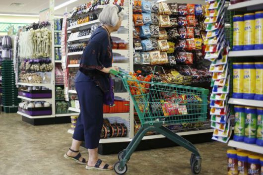 미국 여성이 생활용품점 '달러트리'에서 식료품을 구입하고 있다. 2018.08.30 [사진=블룸버그] |