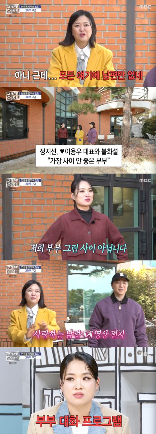 이에 김숙은 "모든 얘기에 남편이 없다"고 지적했다. 이 말에 정지선은 "안그래도 어제 이혼 기사가 떴다. 이혼 임박 이런 식"이라고 털어놨다. 김숙은 "아니지?"라고 물었고 정지선은 "아니다. 우리 사이 너무 좋다"면서도 남편에게 영상 편지를 보내라는 말에 "닭살 돋아"라고 몸서리쳤다.