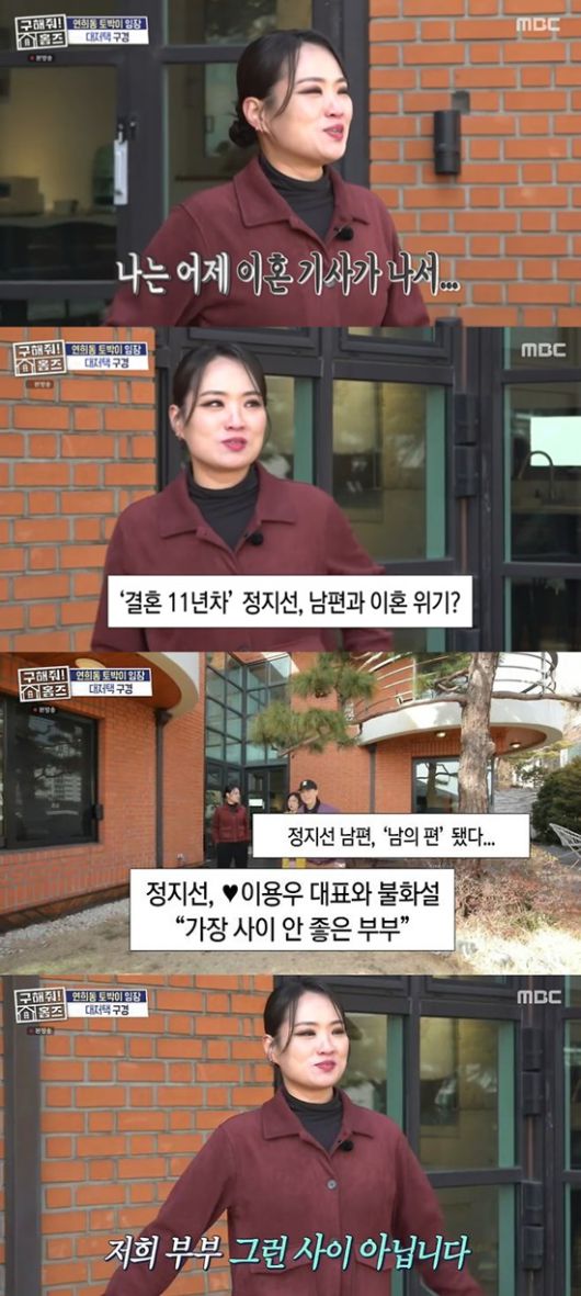 이를 듣고 있던 김숙은 "모든 얘기에 남편이 없다"고 말했고, 정지선은 "어제 이혼 기사가 났다"며 씁쓸하게 웃었다.