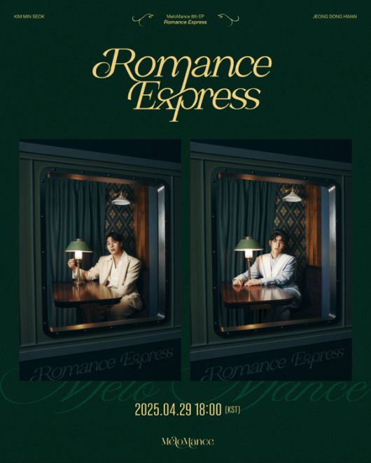공개된 이미지에는 객차 창문을 통해 비치는 김민석, 정동환 두 멤버의 모습이 담겨있다. 두 사람은 각각 베이지와 그레이 톤의 밝은 수트를 착용해 포멀한 매력을 자아냈다. 짙은 초록색을 메인으로 한 클래식한 열차 내부는 엔틱한 조명, 커튼 장식과 어우러져 우아한 분위기를 더했다. 이와 함께 새 미니앨범의 타이틀인 'Romance Express'와 발매일시가 함께 공개되며 기대감을 고조시켰다.