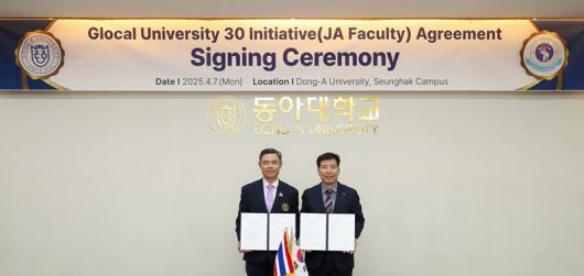 [파이낸셜뉴스] 지난 7일 동아대학교는 태국 치앙마이대학교와의 학술교류 협정에 따라 ‘글로벌 JA 교원 합의서 서명식’을 개최했다고 11일 밝혔다. 이 자리에는 이해우 동아대 총장과 퐁룩 스리반딧몽콜 치앙마이대 총장을 비롯해 양교 주요 인사들이 참석했다. 치앙마이대는 의과대학, 공과대학, 경영대학 등 20개 단과대학과 약 3만 8000명의 재학생을 보유한 태국 3대 명문대 중 하나다. 동아대는 이 대학과의 협력을 통해 국내 학생들에게 해외 유학 없이도 세계 수준의 교육을 접할 수 있는 기회를 제공하게 됐다.