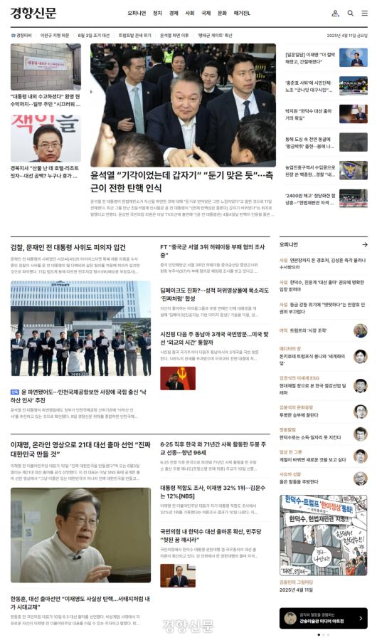 개편된 경향신문 홈페이지 |