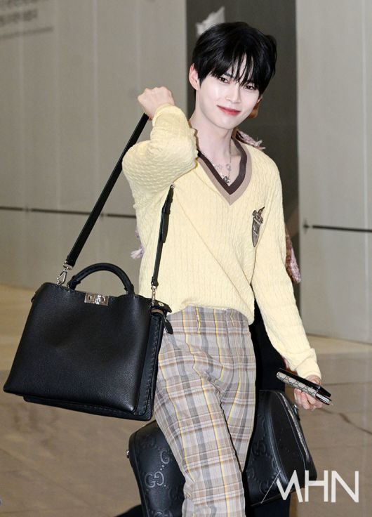 제베원 성한빈이 출국 전 포토타임을 가지고 있다.