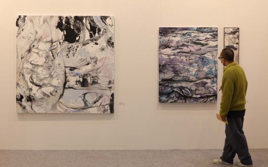 기체갤러리 부스에선 황원해 작가의 작품이 전부 팔렸다. 건축물의 기하학적 요소를 물감 번지듯 묘사한 독특한 화풍의 황 작가는 이틀간 뜨거운 관심을 받았다. 1080만원에 거래된 'Molding'(2025)을 비롯해 작품 9점이 완판된 상태다. 안지윤 기체 선임매니저는 "판매가 기대 이상이었다. 다른 작가들도 남은 작품이 얼마 없어 갤러리 수장고에서 작품을 추가로 가져오려고 한다"고 귀띔했다. 이 갤러리에선 김지평 작가, 남아프리카공화국에서 활동하는 가브리엘 크루거의 작품도 대부분 판매 완료됐다.