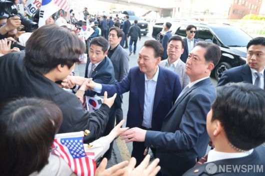[서울=뉴스핌] 김학선 기자 = 윤석열 전 대통령이 11일 서울 용산구 한남동 대통령 관저를 떠나 서초동 사저로 이동하며 지지자들과 인사를 하고 있다. 2025.04.11 yooksa@newspim.com |