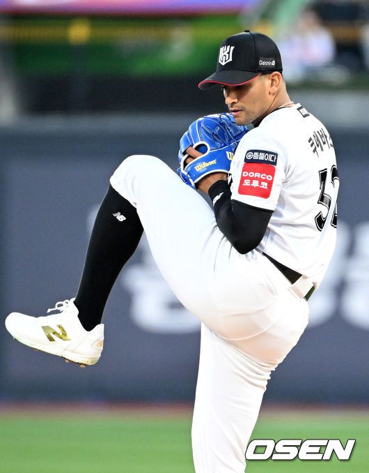 [OSEN=수원, 이대선 기자] 11일 오후 수원 KT위즈파크에서 2025 신한 SOL Bank KBO리그 KT 위즈와 삼성 라이온즈의 경기가 열렸다. 1회초 무사에서 KT 선발투수 쿠에바스가 역투하고 있다. 2025.04.11 /sunday@osen.co.kr