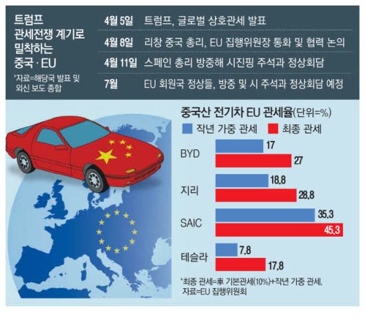 중국은 도널드 트럼프 미국 대통령의 예상을 뛰어넘는 무차별 관세 공격에 러시아·우크라이나 전쟁과 중국발 공급과잉 등 주요 국제 현안을 두고 이견을 보여 온 EU와 관계를 재정립하고 공동 전선 구축에 나섰다. 최대 무역 상대국인 아세안과도 밀착을 강화하며 우호 관계를 공고히 하고 있다.