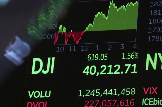 11일(미국 동부시간) 뉴욕증권거래소(NYSE)에서 장 마감 후 다우존스30산업평균지수는 전장보다 619.05포인트(1.56%) 오른 4만212.71에 거래를 마쳤다. 스탠더드앤드푸어스(S&P)500지수는 95.31포인트(1.81%) 오른 5363.36, 나스닥종합지수는 337.14포인트(2.06%) 상승한 1만6724.46였다.