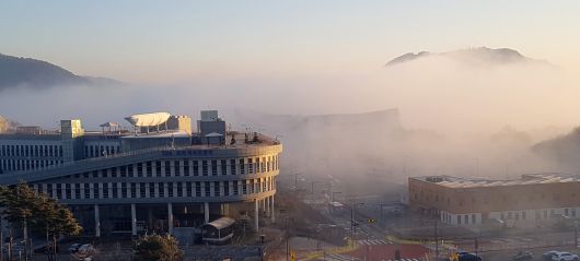 세종시 어진동 정부세종청사가 안개에 휩싸여 있다. [뉴시스] |