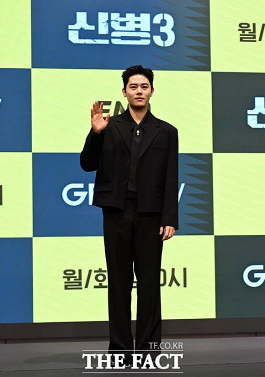 배우 김동준이 7일 오후 서울 구로구 디큐브시티에서 열린 지니TV 오리지널 '신병3' 제작발표회에 참석해 포즈를 취하고 있다. /임영무 기자 |