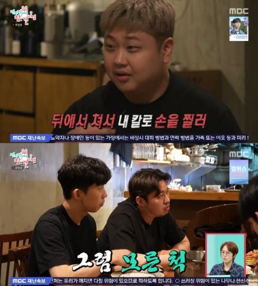 이어 "뒤에서 쳐서 내 칼로 손을 찔러. 치고 나서 내가 모라고 하면 모르는 척해. 그래서 레스토랑 밑에서 맥주 먹으면서 매일 울었어. 그런데 도망가는 게 더 창피한 거야"라며 당시의 심정을 전했다.