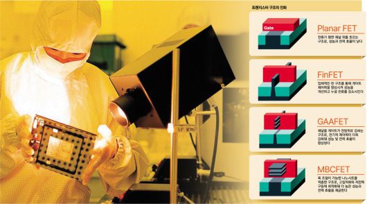 삼성전자는 이를 해결하고자 세계 최초로 3㎚ 공정에서 게이트올어라운드(GAA·Gate-All-Around) 구조를 도입했습니다. 종전 핀펫(FinFET) 방식이 트랜지스터의 전류 통로인 채널을 삼면에서 감쌌다면, GAA는 네 면을 감쌉니다. 즉 채널을 완전히 둘러싸 전류를 더 촘촘하게 조절할 수 있는 셈입니다.