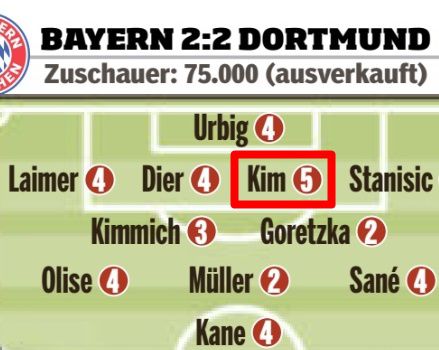 독일 유력지 '빌트'는 김민재에게 팀 내에서 가장 낮은 평점 5를 줬다. 독일 언론은 평점을 1~5점 사이로 매기는데, 점수가 낮을수록 좋은 활약을 펼쳤다는 의미이다.