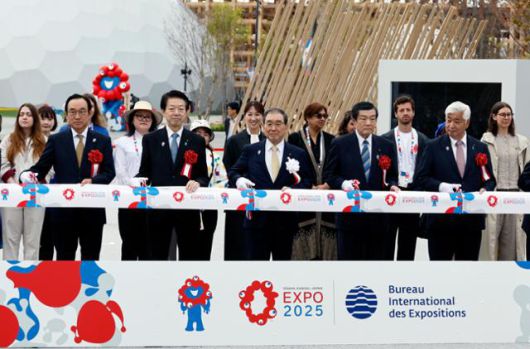 2025일본박람회협회 관계자들과 일본 정부 인사들이 13일 일본 오사카 유메시마에서 열린 2025 오사카·간사이만국박람회(오사카엑스포) 개막 전 테이프 커팅식에 참석해 테이프를 자르고 있다. 오사카=EPA 연합뉴스 |