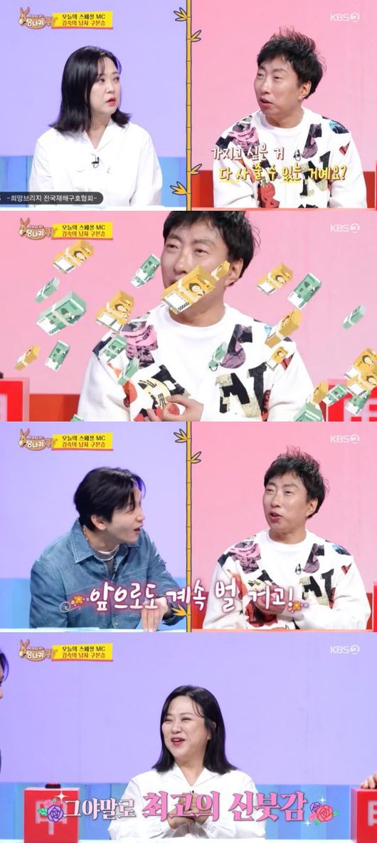 또 이날 MC들은 김숙이 구본승에게 선물한 카메라에 대해 언급하면서 “가지고 싶은 거 다 사줄 수 있냐?”라고 물었고, 김숙은 “오빠가 가지고 싶은 거 다 사줄 수 있다”라면서 구본승에 대한 각별한 마음을 드러내기도 했다.
