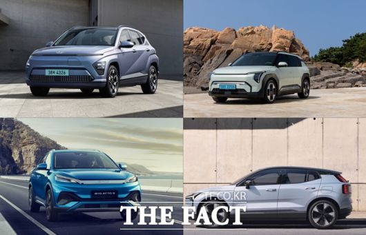 최근 자동차 시장 조사업체 카이즈유데이터연구소에 따르면 올해 1분기 국내 전기차 판매량은 총 3만3482대로 전년 동기(2만5550대) 대비 31% 증가했다. 현대차 코나 일렉트릭(왼쪽 위)·기아 EV3(오른쪽 위)·BYD 아토 3(왼쪽 아래)·볼보 EX30. /현대차그룹·BYD·볼보 |