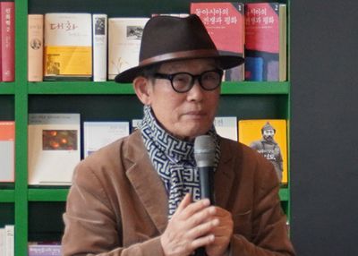 지난 12일 『로마인 이야기』 출간 30주년 기념 행사장의 한길사 김언호 대표. [사진 한길사]