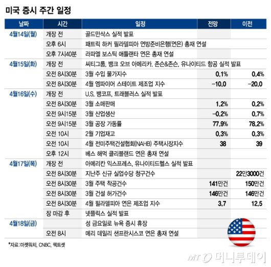 미국 증시 주간 일정_0413/그래픽=김현정 |