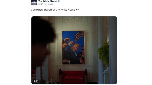 도널드 트럼프 미국 대통령이 백악관 현관 로비에 걸린 버락 오바마 전 대통령의 초상화를 옮기고 같은 자리에 작년 자신이 암살 시도에서 살아남은 장면을 담은 그림을 걸었습니다.