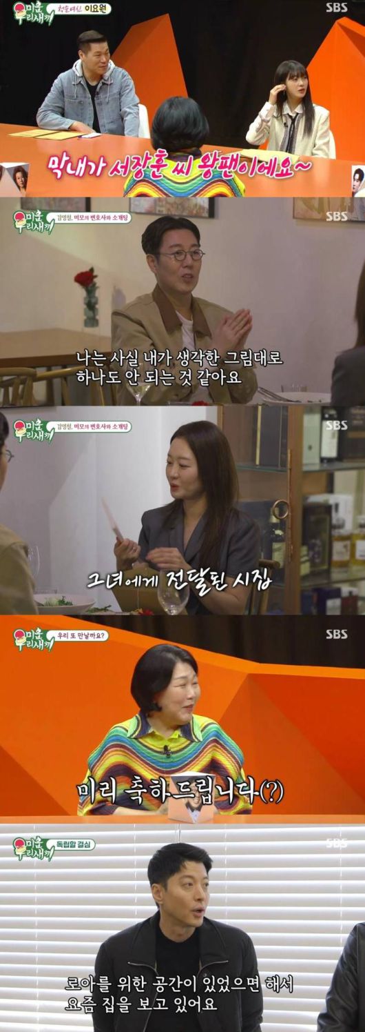 ‘미우새’ 김영철의 설렘 가득한 소개팅이 공개됐다. 변호사에 로스쿨 교수라는 소개팅 상대 스펙이 밝혀지자 스튜디오에 있던 김영철의 누나는 “우리 영철이가 너무 딸린다”라며 걱정을 내비쳤다. 소개팅 상태가 짧게 결혼 생활을 한 적 있다는 오정태의 설명에 김영철은 “나는 이 나이에 쌩싱글인 내가 더 미안하다”라며 전혀 상관없다는 태도를 보였다.