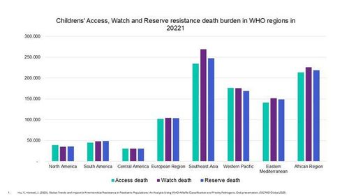 분석 결과 2022년 항생제 내성균 감염 및 합병증으로 인한 어린이 사망자는 동남아시아에서 75만2천여명으로 가장 많았고 다음은 아프리카(65만9천여명), 서태평양, 중동 지역 순이었다.
