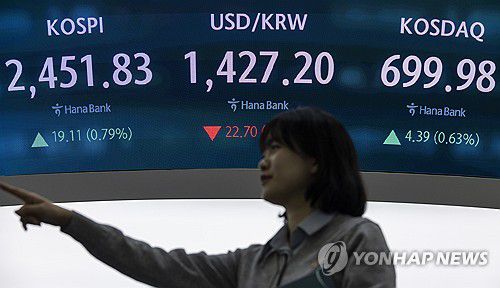 이날 오전 9시 2분 코스피 지수는 전장보다 17.53포인트(0.72%) 오른 2,450.25다.