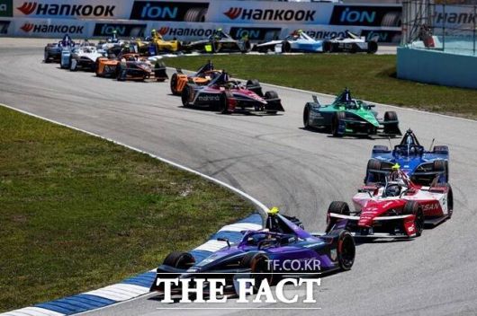 14일 한국타이어에 따르면 이번 대회에 참가한 22명의 드라이버들은 고속주행과 급격한 코너가 반복되는 '홈스테드-마이애미 스피드웨이'에서 폭발적인 기량을 뽐내며 치열한 레이싱 접전을 펼쳤다. 특히 극한의 상황에서 포뮬러 E 공식 전기차 레이싱 타이어 'GEN3 에보 아이온 레이스'는 접지력, 핸들링 등 우수한 성능을 발휘하며 경기 운영의 핵심 변수로 작용했다.