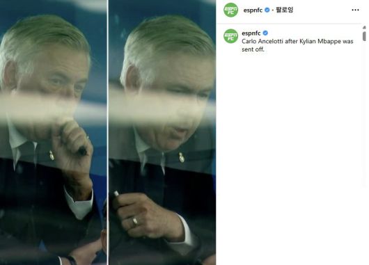 글로벌 매체 'ESPN'은 매체 공식 사회관계망서비스(SNS)에 "음바페의 퇴장에 안첼로티"라는 제목과 함께 사진을 공개했다. 안첼로티는 전자담배를 태우고 있었다. 매체가 공개한 안첼로티의 흡연 사진은 정말 음바페 퇴장 후 나온 행동인지 아님 과거에 찍힌 사진이 지금 상황과 적절해서 넣은 것인지 확인되진 않았다.