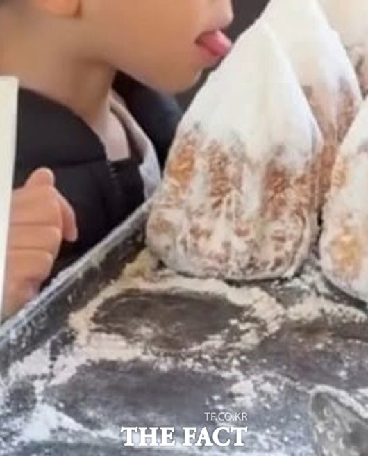 [더팩트|오승혁 기자] 초등학생으로 보이는 아이가 진열된 빵에 혀를 대는 영상이 SNS를 통해 공유되면서 자녀 교육과 카페의 위생과 관련된 논란이 일고 있다.