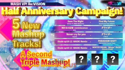 이밖에도 음악 게임 팬들의 많은 사랑을 받고 있는 ‘MASH VP! Re:VISION’의 매쉬업 오리지널 사운드트랙 CD 제3탄이 오는 M3(음악 동인지 즉매회)에서 발매된다. 이번 OST는 게임 팬과 음악 팬 모두를 위해 특별히 구성된 총 20곡의 알찬 콘텐츠로 찾아온다. 특히 일본 리듬 게임 신(scene)에서 활발히 활동 중인 유명 작곡가 TORIENA, NAMV, siqlo 등 아티스트들의 신곡은 물론, 오직 ‘MASH VP! Re:VISION’에서만 경험할 수 있는 독창적이고 매력적인 매쉬업 트랙들이 다수 수록돼 있어 팬들의 기대를 모으고 있다.