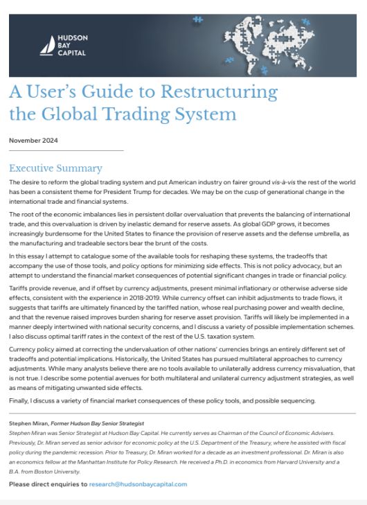 트럼프 행정부의 관세전쟁의 작동 방식과 목표를 알 수 있다는 소문이 퍼지며 올들어 전 세계에서 관심이 집중되고 있다. 이 지면을 통해서도 몇 분들이 소개한바 있다. 관세를 최대한 활용해서 무역구조를 재편하고 더 나아가 약달러까지 유도해야 한다는 것이다.