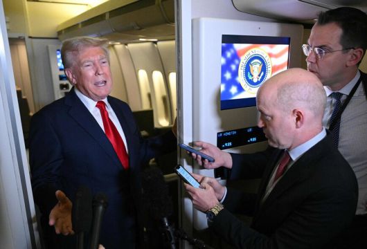도널드 트럼프 미국 대통령이 13일(현지시각) 골프장이 있는 플로리다주 팜비치에서 미국 메릴랜드주에 있는 앤드루스 미 해·공군 합동기지로 이동하는 동안 에어포스원 기내에서 기자들과 이야기를 나누고 있다. AFP연합뉴스 |